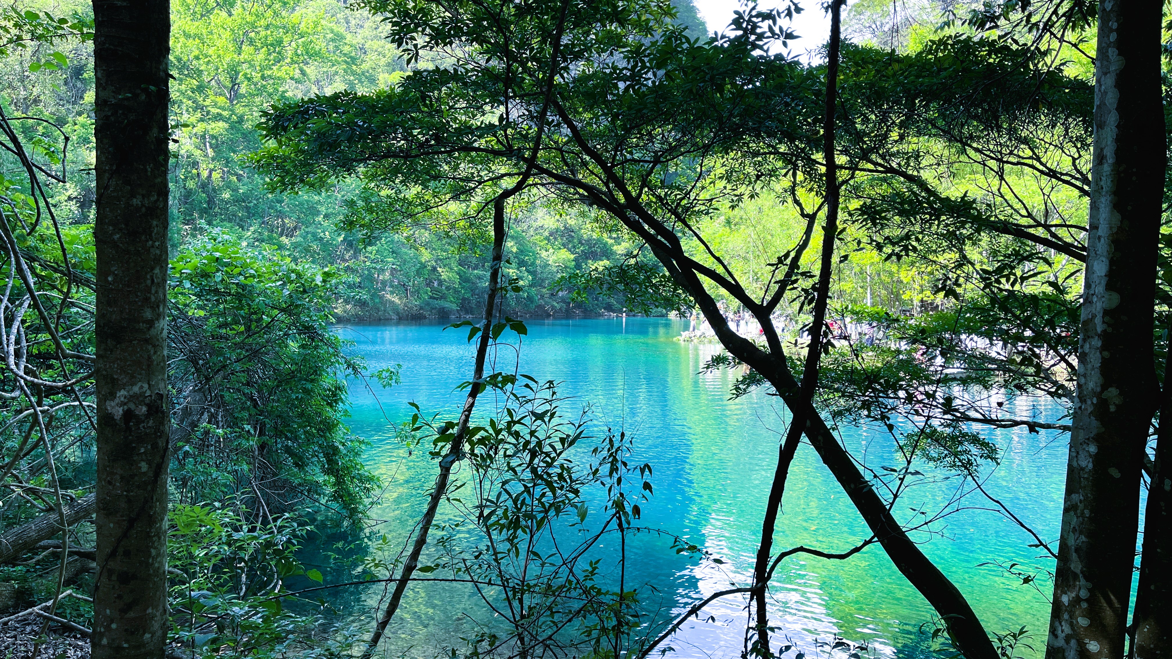 过小七孔桥行数百米即可看见拉雅瀑布。“拉雅”是布依族语,意思为美丽的姑娘。